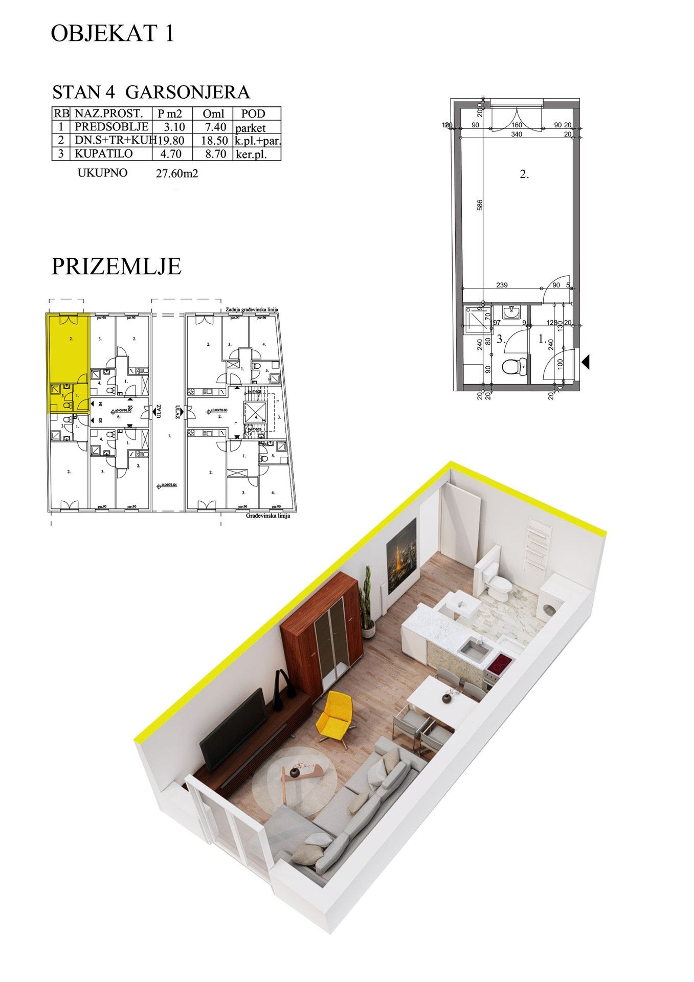 U prodaji stanovi u samom centru grada, u neposrednoj blizini reke. Kupci mogu da utiču na položaj pregradnih zidova. Takodje, mogu da biraju keramičke pločice, kod dobavljača investitora. Ostali detalji obrade su u nadležnosti investitora.